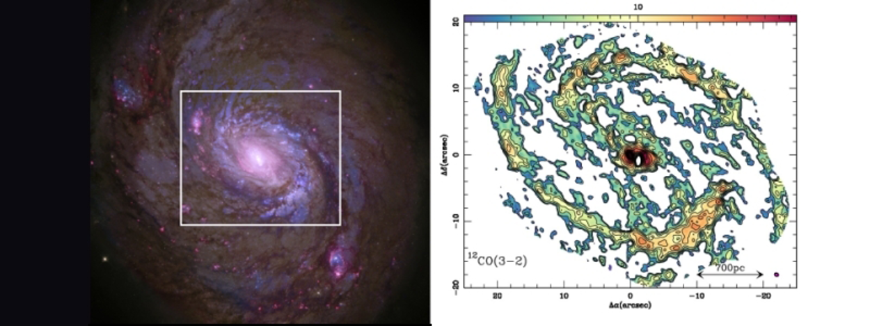 Galaxia activa NGC1068 observada por Hubble y el interferómetro ALMA